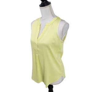 Ann Taylor Light Yellow with White Trim Sleeveless Sheer Top