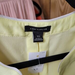 Ann Taylor Light Yellow with White Trim Sleeveless Sheer Top Size XS NWT