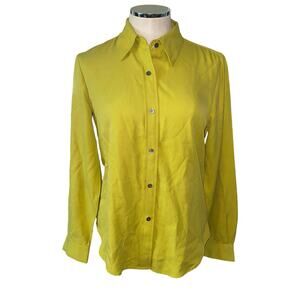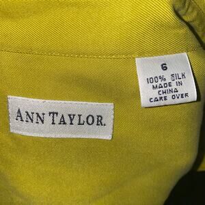 Ann Taylor Lime Green Yellow Silk Long Sleeve Button Up Shirt Size 6