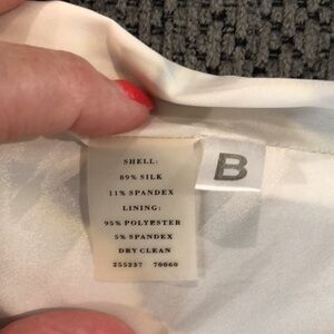 This Ann Taylor petite silk blend skirt is a versatile and elegant addition to your wardrobe. It features a cream background with a blurred black, gold, and yellow floral print, making it perfect for transitioning from summer to fall. The skirt has a wide elastic waistband for comfort and a secure zip and snap side closure. Fully lined, it offers a smooth and polished fit.