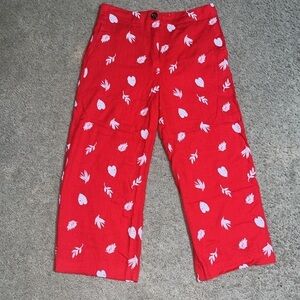 Ann Taylor Linen Blend Plant Leaf Embroidered Wide Leg Crop Pant Red 10