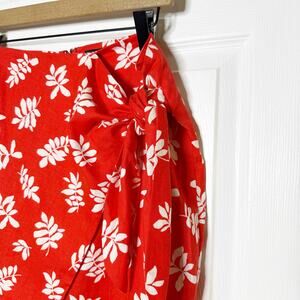 Ann Taylor Linen Blend Red Leaf Print Sarong Skirt Size 6