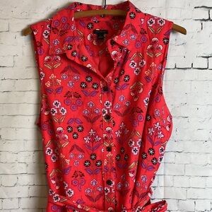 Ann Taylor Floral Linen Blend Sleeveless Shirtdress Tie Waist 2023 Size 12