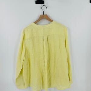Ann Taylor Linen Button Down Shirt Top Blouse Yellow Long Sleeves Size XXL