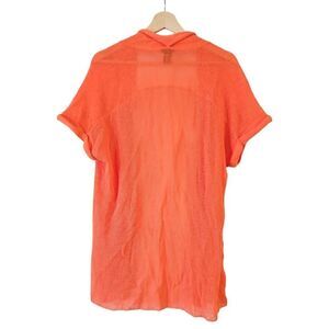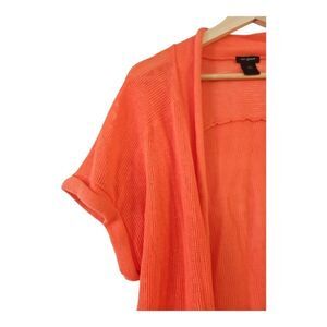 Ann Taylor Linen Cotton Blend Short Sleeve Open Front Cardigan Sweater Coral S