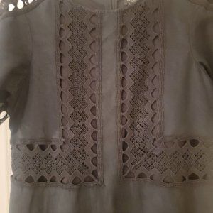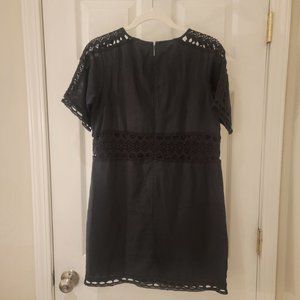 Ann Taylor Linen Crochet Eyelet Lace Sheath Dress Black Size Extra Small Petite