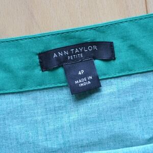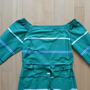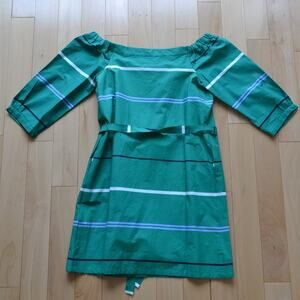 Ann Taylor Linen Shift Dress Size 4P Striped Green Pockets Belt
