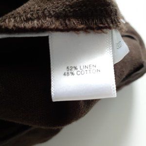 Very good pre-owned condition. Ann Taylor Linen/Cotton Blend Cuff Shorts with Flap Pockets. Size 10. 52% linen/48% cotton. Machine wash. Flat front with a French fly. Two front flap pockets and two rear patch pockets. Legs are cuffed. Color is a milk chocolate brown.