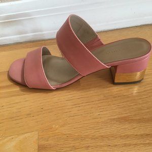 Extremely Ann Taylor Liv Sandals in pink. Barely worn, shoes no wear on soles or heels. Elevate your style with these 2 inch gold block heels