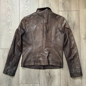 Ann Taylor Loft 100% Genuine Leather Brown Jacket Size 0 Petites