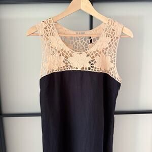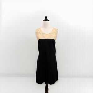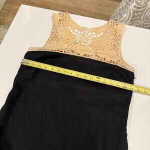 Ann Taylor Loft 100% Linen Dress Size 6 Boho Crochet Lace Black Classy Sundress