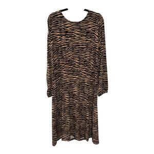 Ann Taylor Loft 14 Animal Print Long Sleeve Midi Dress Tiger Stripes Brown Black