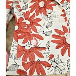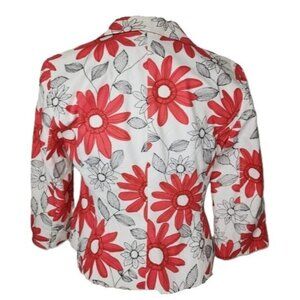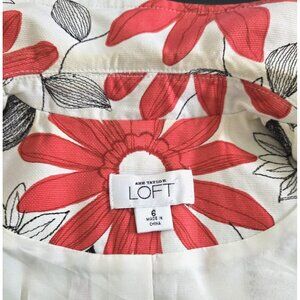 Ann Taylor Loft 3/4 Sleeve White Cotton Jacket With Pink Flowers Sz 0