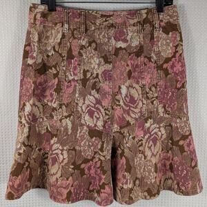 Ann Taylor Loft 4 Corduroy Floral Skirt Brown Pink Retro Y2K Fall Cotton Womens