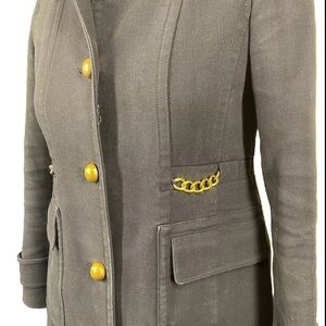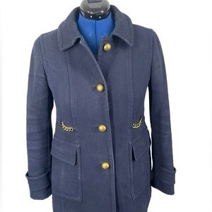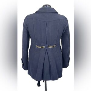 Ann Taylor Loft 4 Navy Blue Military Coat Chains Classic Career Peacoat Cotton