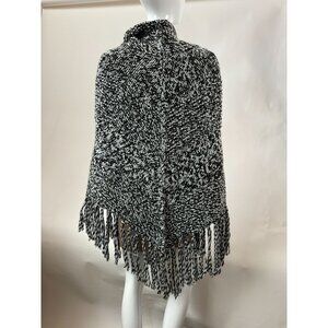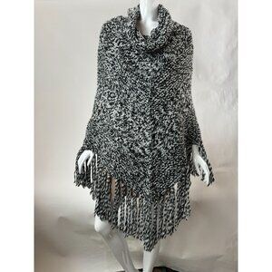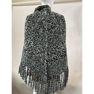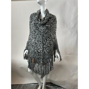 Ann Taylor Loft Acrylic Knit Cowl Neck Poncho With Fringe Made in Italy