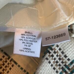 This beautiful skirt has a lining on the inside and can be styled for multiple seasons - a colorful shirt for spring, add tights and knee-length boots during fall or a blazer for business and workwear. The colors are neutral and would match well with brown, teal, or ivory.