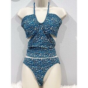 Ann Taylor Loft Beach Women Swimsuit 2-Piece Green Floral Keyhole Tankini Bikini Medium