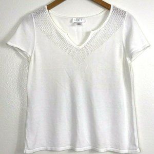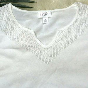 Ann Taylor Loft Beaded Collar Short Sleeve Top