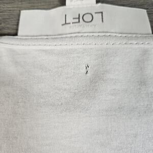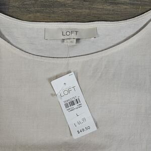 Elevate your wardrobe with this stunning beige blouse from Ann Taylor Loft. The short sleeve top features a scalloped edge and beaded accents that add a touch of elegance to any outfit. The blouse is made from 100% cotton and has a round neckline for a comfortable fit. It's perfect for any occasion and can be easily paired with your favorite jeans or skirt.