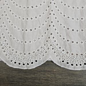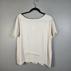 Ann Taylor Loft Beige Eyelet Embroidered Beaded Scallop S/S Top Shirt Large
