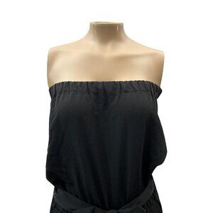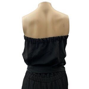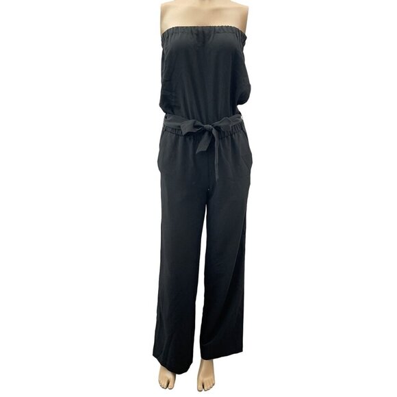 Ann Taylor Loft Belted Tie Waist Strapless Straight Leg Black Jumpsuit Women XS