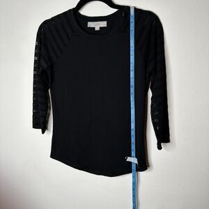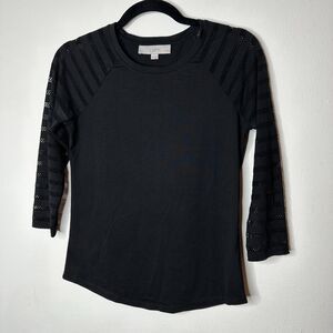 Ann Taylor Loft Black 3/4 Sleeve Cut Out Triangle Stripe Design Round Neck Shirt Top