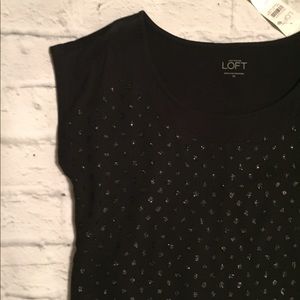 Ann Taylor Loft Black Cap Sleeve Sparkly Top