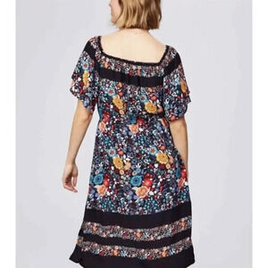 Ann Taylor Loft Black Floral Off Shoulder Dress Women's Sz Small Petite Boho