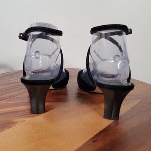 Ann Taylor Loft Black Heels Women's Size 7 Wrap Around Ankle Strap Kitten Heel