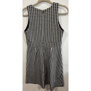 Ann Taylor Loft Black Off White Geometric Print Dress Flared Size 6 Sleeveless