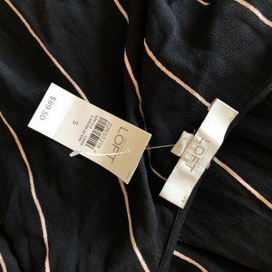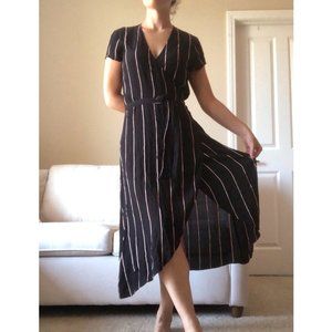 This pretty wrap dress is by Ann Taylor Loft. It is black with delicate pink stripes. It is a true wrap style dress. The dress is brand new with tags still attached. I never wore it! Size small. I am a size 4/6, and I'm 5'6 for reference. 100% rayon. Thanks for looking!
