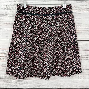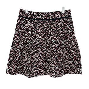 Ann Taylor Loft Black, Pink and White Chain Print Pleated Skirt