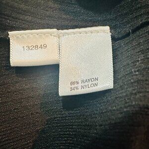 It’s made of a Rayon/Nylon blend, with a bit of stretch so it molds smoothly to the body. Wear alone as a top or over a tee, blouse or dress as a vest. Works for all seasons.