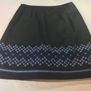 Ann Taylor Loft Black Skirt With Blue Design Sz 10