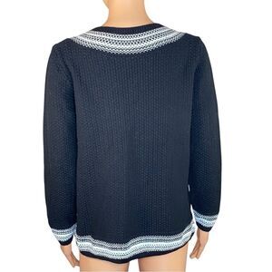 Ann Taylor Loft Black White Knit Sweater Womens Size Small Split Neck