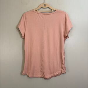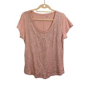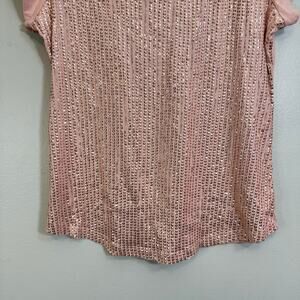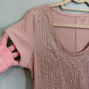 Ann Taylor Loft Blouse Women L Pink Beaded Sequin Embellished Short Sleeve Party