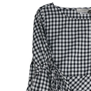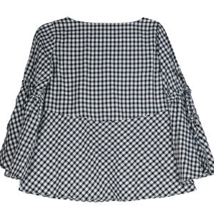 Ann Taylor Loft Blouse Womens PS Small Petite Black White Gingham Split Sleeves with Bow