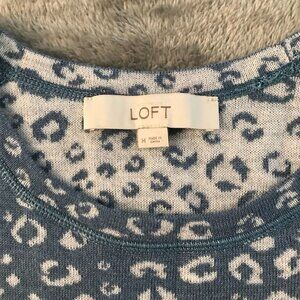Ann Taylor Loft Blue Animal Print Wool Blend Sweater Women's MEDIUM