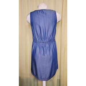 Ann Taylor Loft Blue Jean Chambray Sleeveless Drawstring Shirt Dress S