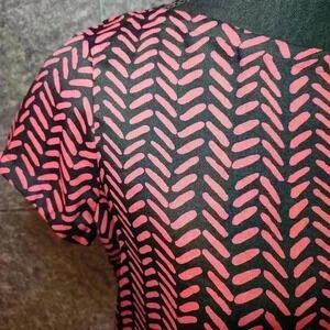 This Ann Taylor Loft blouse is a stylish addition to any wardrobe. The navy and pink herringbone pattern, boat neck, and cap sleeves add a touch of sophistication to this basic piece. The pullover closure and regular fit make it easy to wear and comfortable.