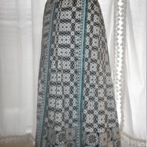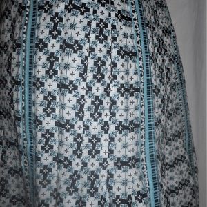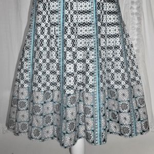 Ann Taylor LOFT A-line knee skirt in white with turquoise & navy print. Side zipper closure. 100% cotton. Excellent shape. Still looks new.