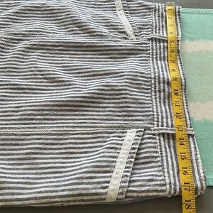 Ann Taylor Loft, Blue & White Stripe, Seersucker Mini Skirt. Two front pockets. Wide waistband with belt loops.