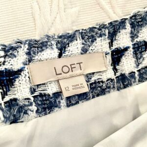 Ann Taylor Loft Blue White Geometric Fully Lined Straight Skirt Size 12