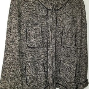 Soft knit boucle blazer, in arresting black/white pattern, with black trim at seams. Perfect for work. Worn only once.