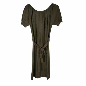 Ann Taylor Loft Brown Accordion Pleated Merino Sweater Dress Tie Waist S Petite
