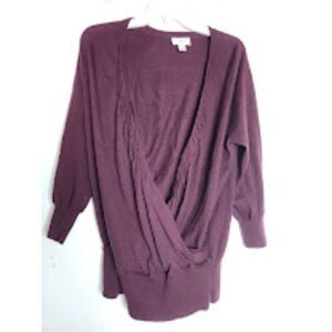 Ann Taylor Loft Burgunday Purple Faux Wrap Pullover Wool Blend Sweater size XL, great condition