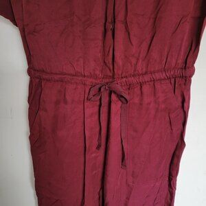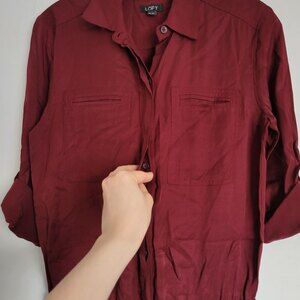 Ann Taylor Loft Burgundy Maroon Wine Rolled Tab Long Pants One Piece Utility Jumpsuit