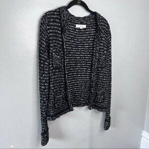 Ann Taylor Loft Cardigan Sweater Black White Stripe Small