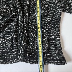 Ann Taylor Loft Cardigan Sweater Knitted Black White Stripe Open Front Cotton Small